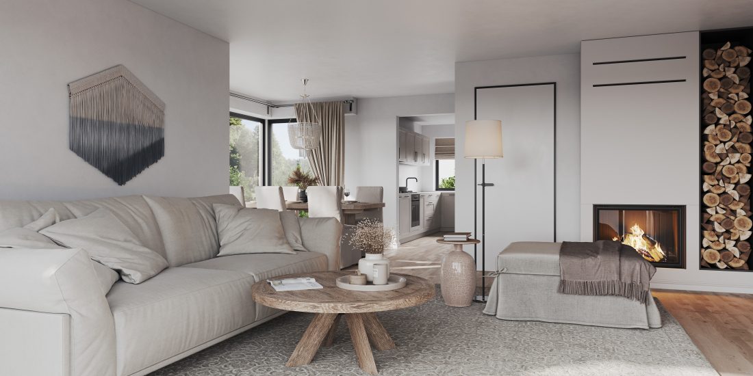 Von der nachhaltigen Wärmepumpe in Verbindung mit Photovoltaik über die Fußbodenheizung bis zu den schall- und wärmeisolierenden Fenstern haben wir für eine hervorragende Energiebilanz in Ihrem neuen Zuhause gesorgt.